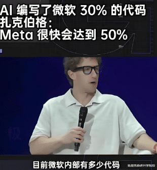 可看到微软 CEO 纳德拉的话才慌了 —— 现在公司 30% 的代码都是 AI 写的,而且这个比例还在涨。