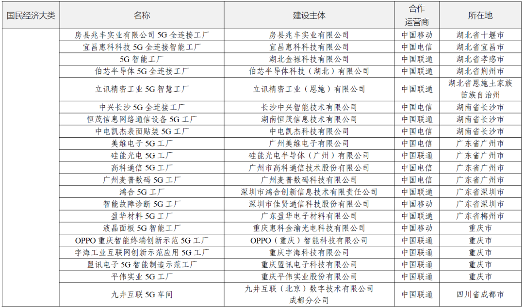 名单显示,新桥煤矿5G智能矿山车间、濮阳展辰树脂合成5G车间、曙光汇知康智能化5G工厂、郑州金河源5G全连接智能工厂、博爱金隅水泥有限公司5G智能化矿山车间、黄河旋风(600172)5G工厂、安钢5G工厂、沁阳市宏达钢铁有限公司5G智慧工厂、卫华集团起重机智能制造5G工厂、正星科技5G工厂、一拖柴油机5G智能工厂、中原内配(002448)5G工厂、驻马店中集华骏铸造5G全连接工厂、商丘金振源电子科技有限公司旗下的3C终端结构件精密智能制造柔性生产5G车间、河南科源电子铝箔有限公司旗下的真空炉5G智能车间、漯河智慧港口5G工厂等河南项目入选。